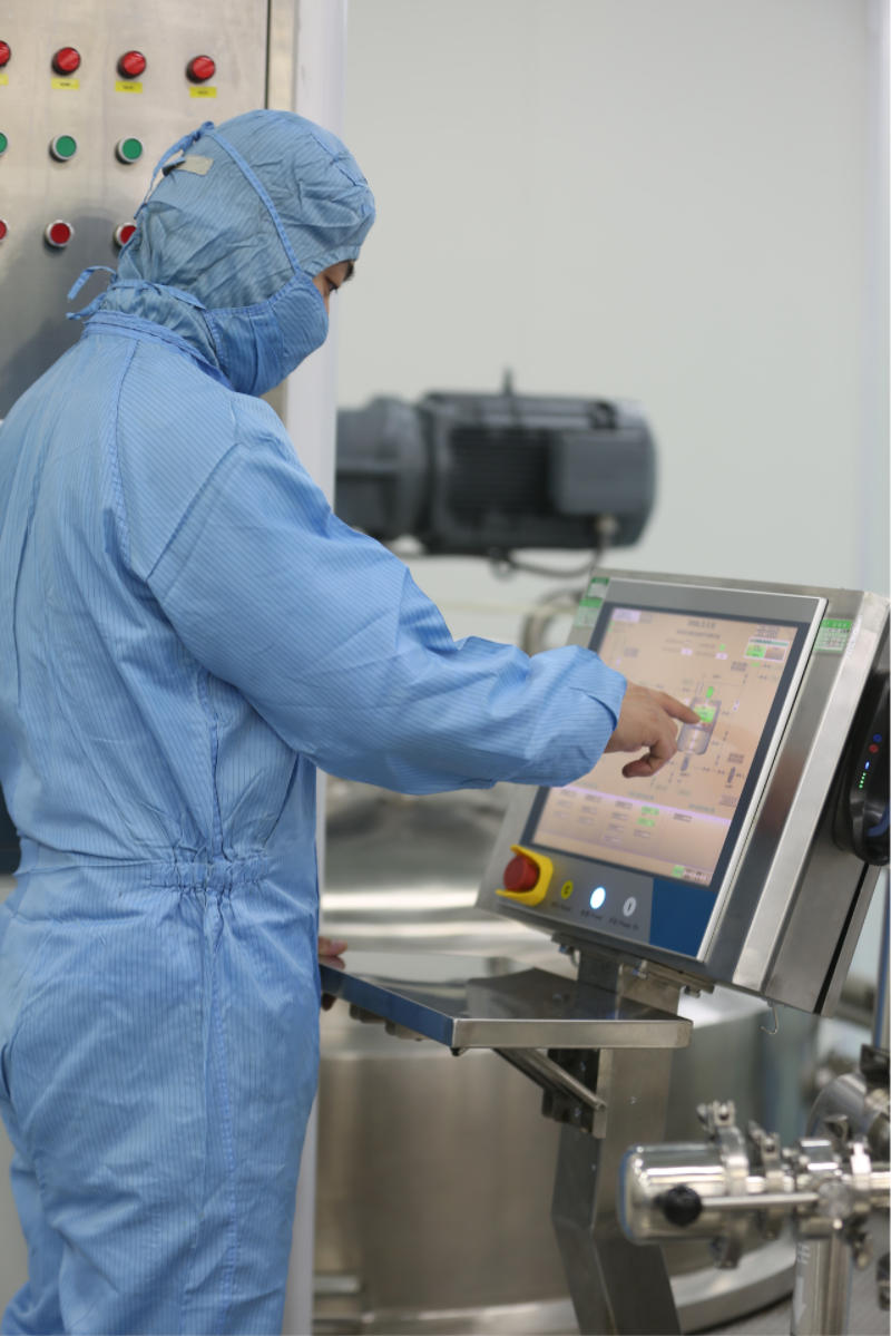 起初,在他印象中“福瑞達”是一個醫藥品牌,后來在不經意間了解到,一些國貨化妝品牌竟出自福瑞達,他便被這一個奇妙的組合所吸引了。潘怡進一步通過福瑞達生物“妝藥同源,科技美膚”的Slogan感受到企業的高標準和嚴要求。第一天走進公司生產基地,看到透明的車間、各類全自動化裝備及整潔有序的生產運輸流程,他決定帶著光和熱融入這個多姿多彩的企業。
