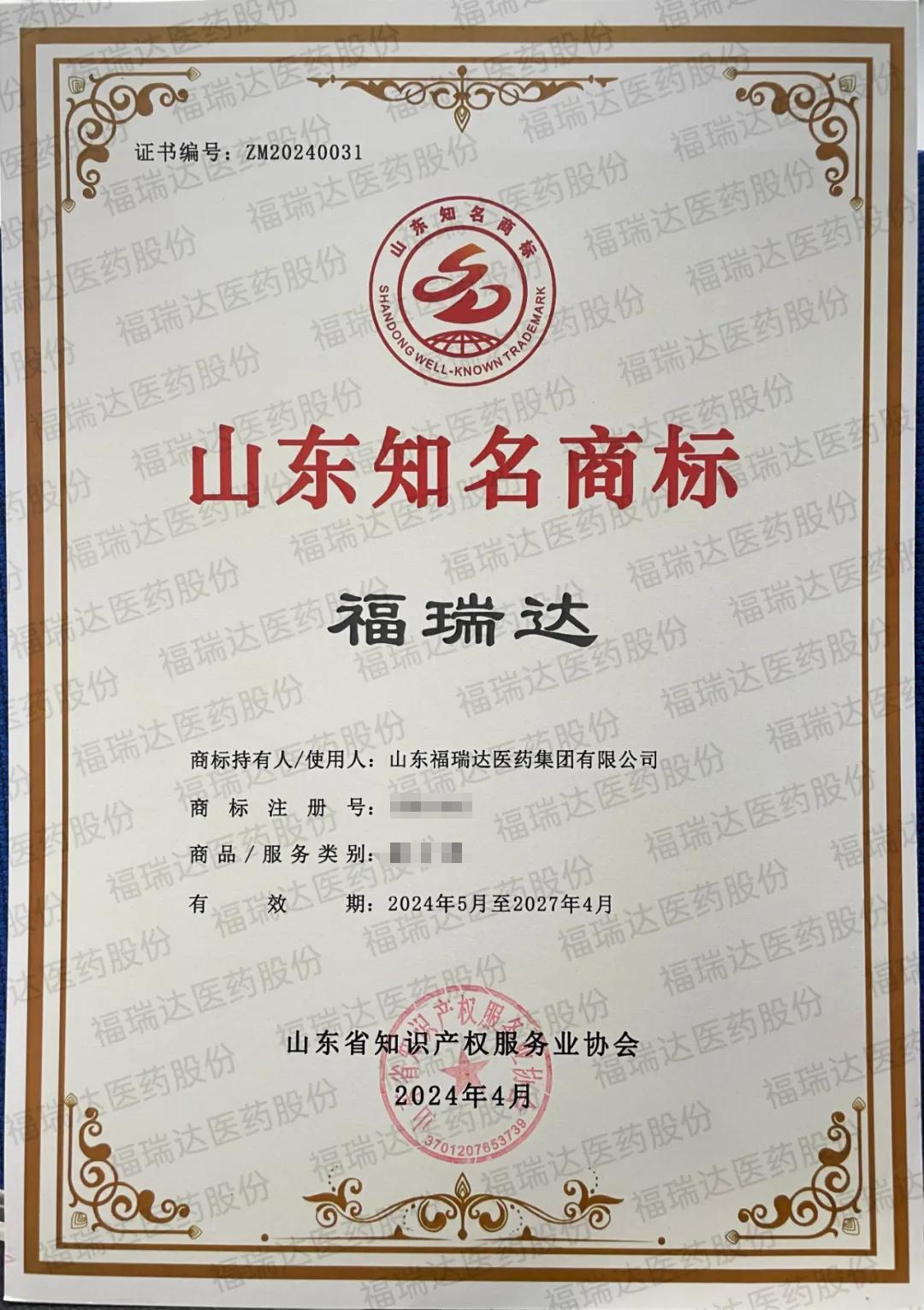近日,山東知名商標(biāo)授牌儀式在“4.26世界知識產(chǎn)權(quán)日”主題活動暨軍創(chuàng)市場主體知識產(chǎn)權(quán)轉(zhuǎn)化運(yùn)用大會上舉行,“福瑞達(dá)”被認(rèn)定為“山東知名商標(biāo)”。