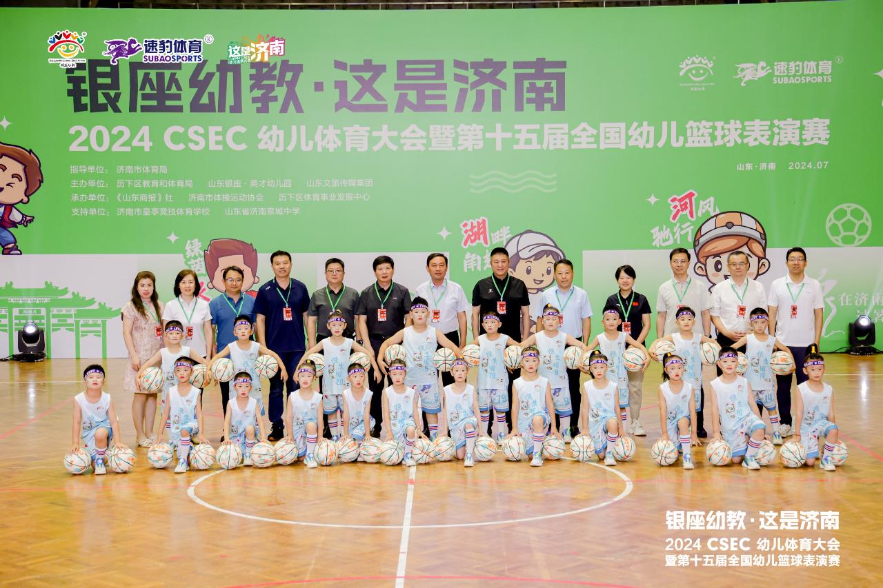 7月5日至7日,銀座幼教·這是濟南2024CSEC幼兒體育大會暨第十五屆全國幼兒籃球表演賽成功舉行。此次活動為期三天,吸引了來自全國各地的43支代表隊、超過1100名幼兒運動員參與,線上超過20000人次觀看賽事直播。魯商集團黨委副書記、董事張洪東出席開幕式。