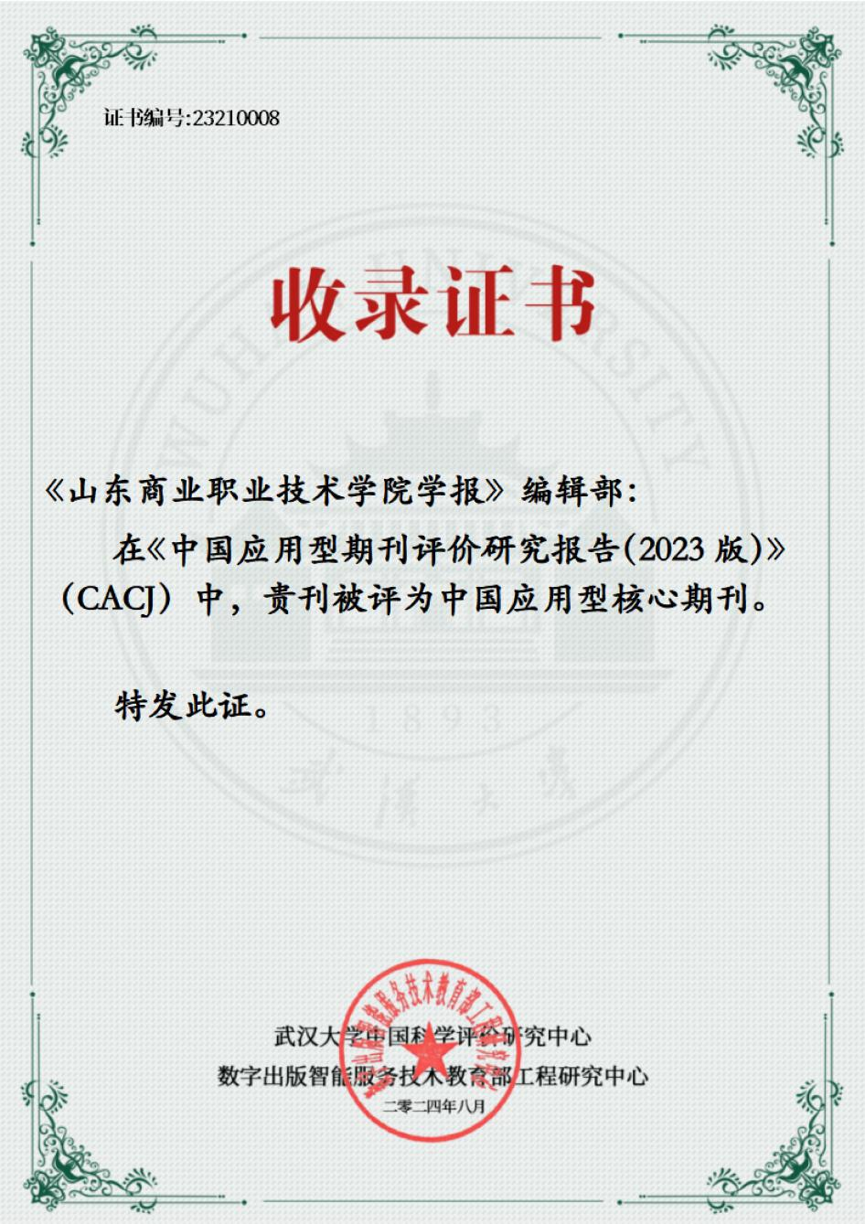 近日,武漢大學中國科學評價研究中心、數字出版智能服務技術教育部工程研究中心聯合開展的國內首次應用型期刊評價工作順利完成,《中國應用型期刊評價研究報告(2023版)》正式發布,《山東商業職業技術學院學報》被評為中國應用型核心期刊。