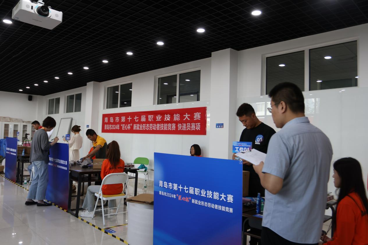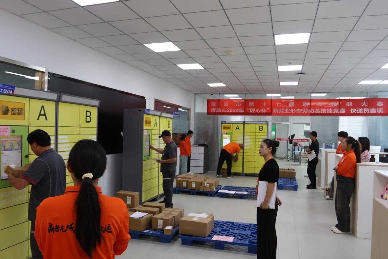 青島酒店管理職院承辦了快遞員賽項比賽,來自全市13家快遞企業的92名參賽選手同臺競技,通過派送路線設計、智能快遞柜操作、多物品收寄3個競賽模塊,對參賽選手進行綜合考查。