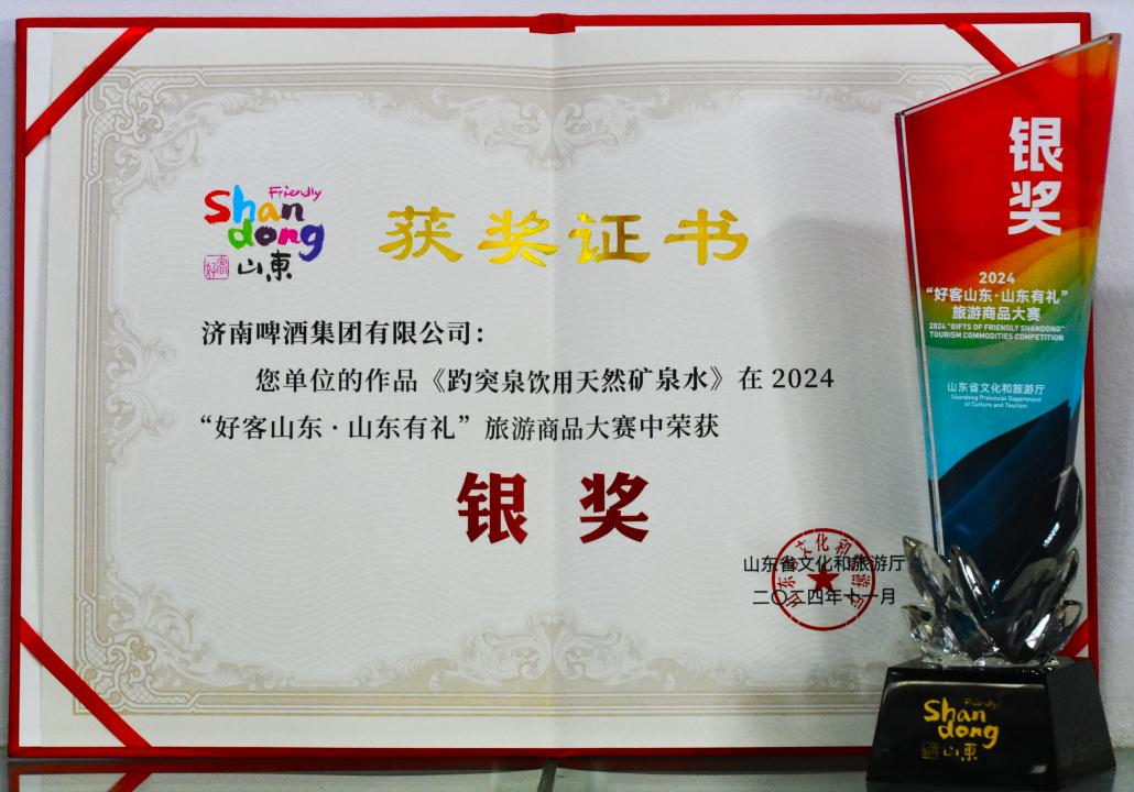 在近日舉辦的“好客山東 山東有禮”旅游商品大賽中,魯商投資旗下濟啤集團趵突泉礦泉水憑借其卓越的品質與深厚的文化底蘊榮獲銀獎。