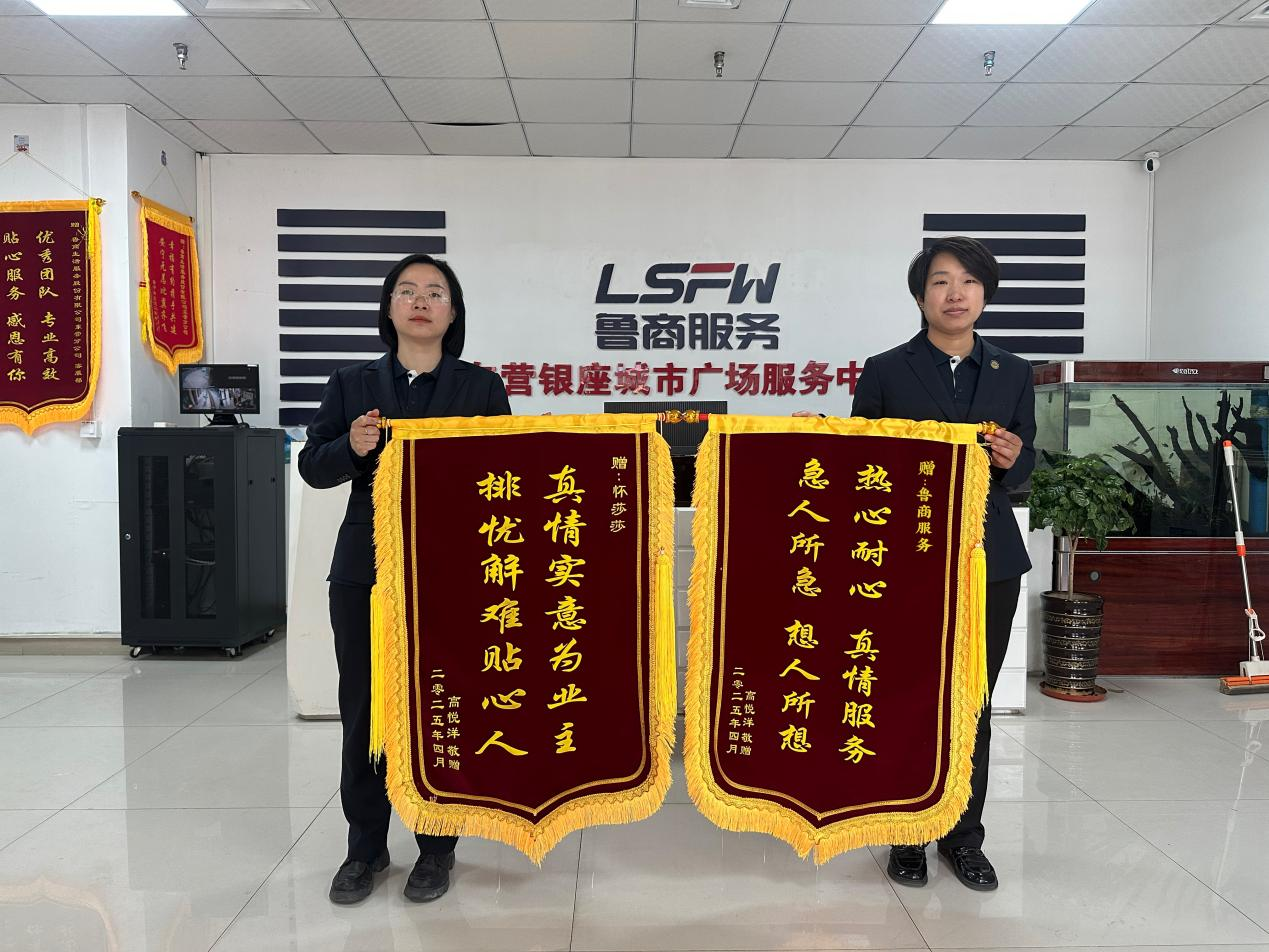 “感謝咱們服務(wù)中心的積極救助,避免了我們家的財產(chǎn)損失。”4月17日下午,東營銀座廣場15號樓業(yè)主高先生手持兩面錦旗來到服務(wù)中心,向管家懷莎莎和服務(wù)中心全體員工表達(dá)謝意。
