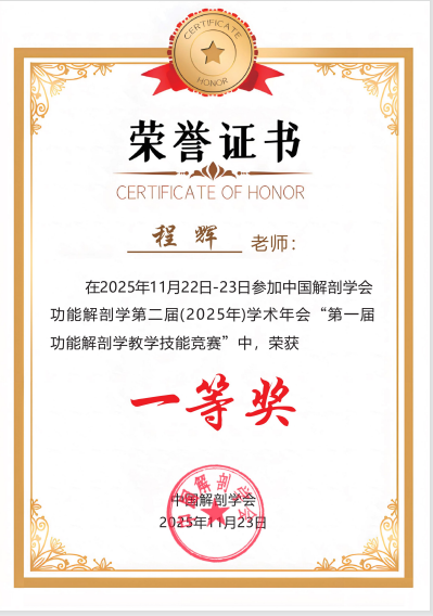 近日,在第一屆功能解剖學教學技能競賽中,齊魯醫藥學院教師程輝憑借扎實專業功底、創新教學設計與精湛授課技巧,從全國多所高校選手中脫穎而出,榮獲一等獎,彰顯了學校深厚積淀與育人實力。