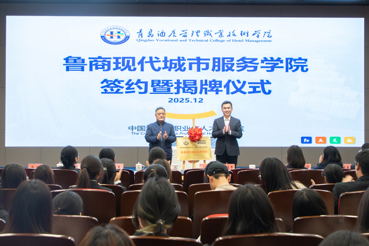 近日,青島酒店管理職院與魯商服務(wù)共建魯商現(xiàn)代城市服務(wù)學院正式揭牌。