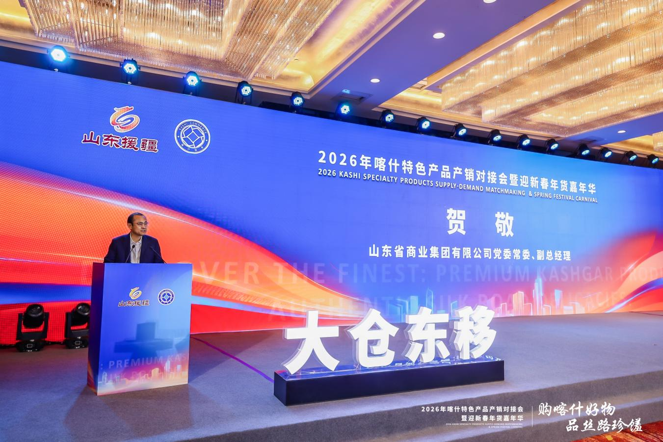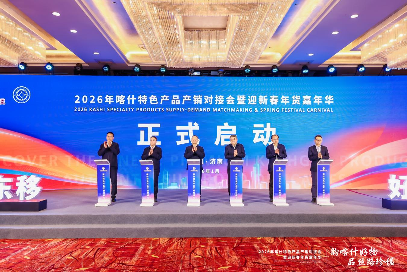 1月27日,2026喀什特色產品產銷對接會暨迎新春年貨嘉年華在濟南正式啟動?;顒佑缮綎|省發展改革委、山東省國資委、山東省對口支援新疆工作指揮部指導,喀什地區商務局、中國物流與采購聯合會主辦,魯商集團承辦。