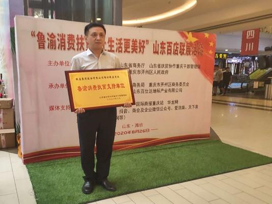 8月27日,山東百店聯(lián)展活動(dòng)在銀座濰坊旗艦店正式啟動(dòng)。啟動(dòng)儀式上,山東省扶貧協(xié)作重慶干部管理組對(duì)濰坊旗艦店授予“魯渝消費(fèi)扶貧支持單位”稱號(hào)。