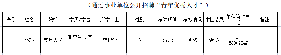 山東省藥學科學院公開招聘青年優秀人才擬聘用人員公示