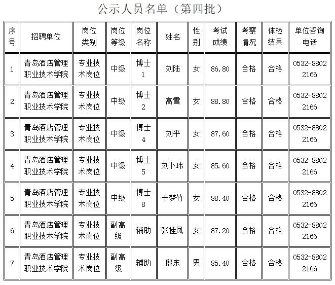 青島酒店管理職業技術學院2024年公開招聘擬聘用人員公示名單 (第四批)