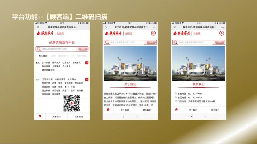 為優(yōu)化守信經(jīng)營(yíng)氛圍及健全商戶信用管理體系,由營(yíng)運(yùn)團(tuán)隊(duì)自主研發(fā)搭建“商戶信用查詢平臺(tái)”,該平臺(tái)通過顧客前端與管理后端兩個(gè)端口管理支撐實(shí)現(xiàn)四個(gè)功能,前端消費(fèi)者可通過展廳二維碼掃描隨時(shí)查看品牌經(jīng)營(yíng)資質(zhì),打消顧慮實(shí)現(xiàn)信用公開可視化;后端設(shè)定提前30天預(yù)警功能實(shí)現(xiàn)授權(quán)資質(zhì)和工廠資質(zhì)預(yù)警管理自動(dòng)化,多維度有效管理控制商戶風(fēng)險(xiǎn),引導(dǎo)商戶由被動(dòng)管理走向自助管理。